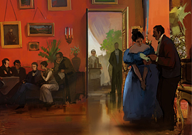 "Начало ХХ века. Серебряный век русской поэзии. Богемная молодёжь собирается в салонах. Они читают друг другу стихи, стреляются из-за жгучих красавиц, пламенно рассуждают о будущем России. Здесь можно встретить меценатов, жандармов, революционеров, ловких аферисток, безответно влюблённых в них поэтов, карточных игроков, профессиональных дуэлянтов, задумчивых философов и даже убеждённых бомбистов. Может быть, один из вас будет азартно бросать на карточный стол деньги, срывая восторженные аплодисменты, а другой хладнокровно бросит бомбу, которая решит судьбу России."