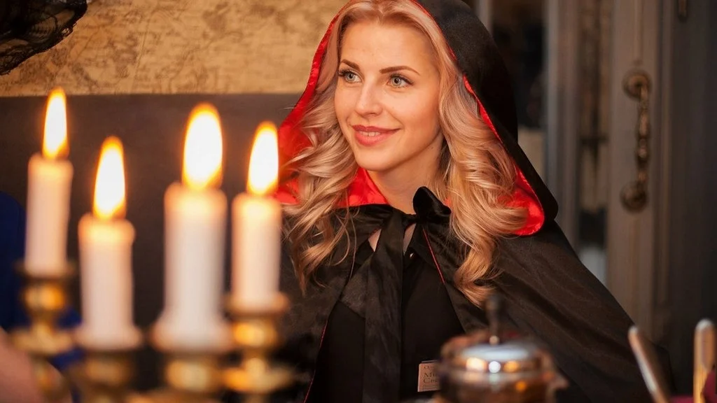 Мы подберём для вас кафе, идеально подходящее для игры. В зависимости от количества гостей: просторное, с несколькими залами или одну уютную комнату. Постараемся, чтобы интерьер подчеркнул атмосферу сценария — средневековая таверна, литературный салон или палуба корабля.